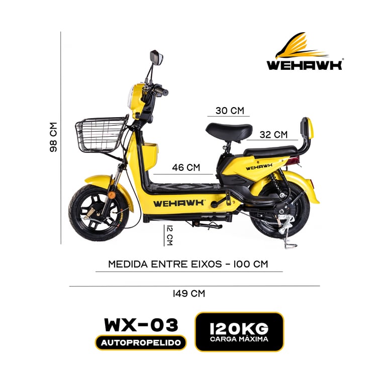 Bicicleta Scooter Eletrica Wx-04 Wehawk 450w Bat 48v 12ah Amarela