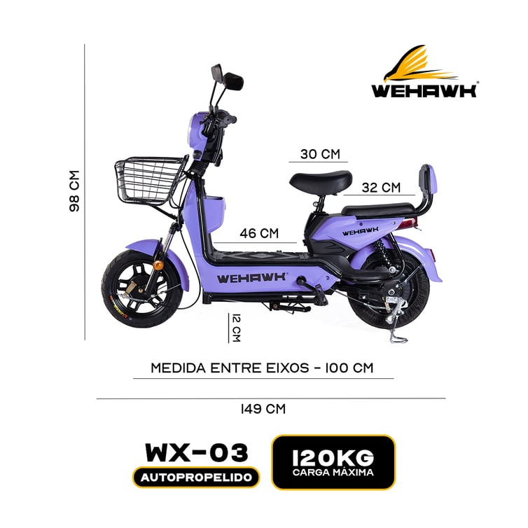 Bicicleta Scooter Eletrica Basket Wx-03 Wehawk 500w Bat 48v 12ah Lilas