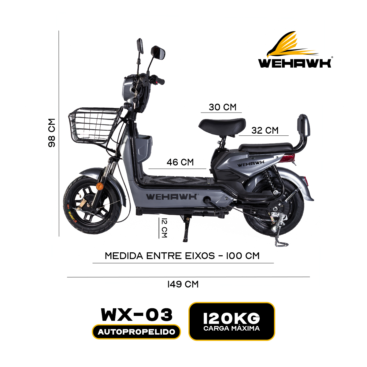 Bicicleta Scooter Eletrica Eb500w Wx-01 Wehawk Bat 48v 12ah Preta