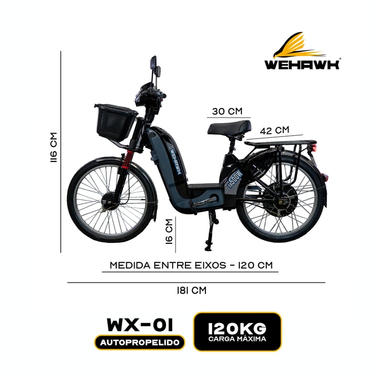 Bicicleta Scooter Eletrica Basket Wx-03 Wehawk 500w Bat 48v 20ah Litio Preta