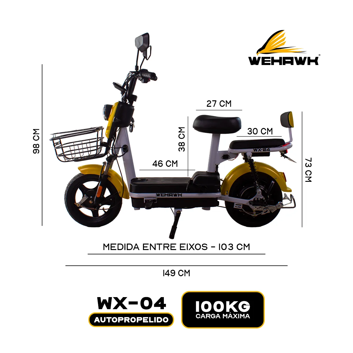 Bicicleta Scooter Eletrica Basket Wx-03 Wehawk 500w Bat 48v 12ah Amarela