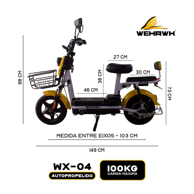 Bicicleta Scooter Eletrica Basket Wx-03 Wehawk 600w Bat 48v 12ah Amarela
