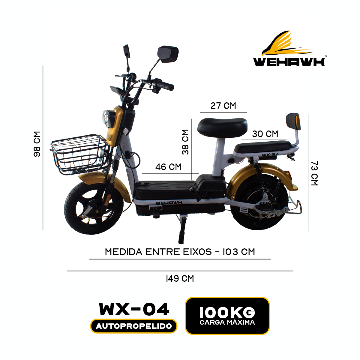 Bicicleta Scooter Eletrica Wx-04 Wehawk 450w Bat 48v 12ah Dourada Br