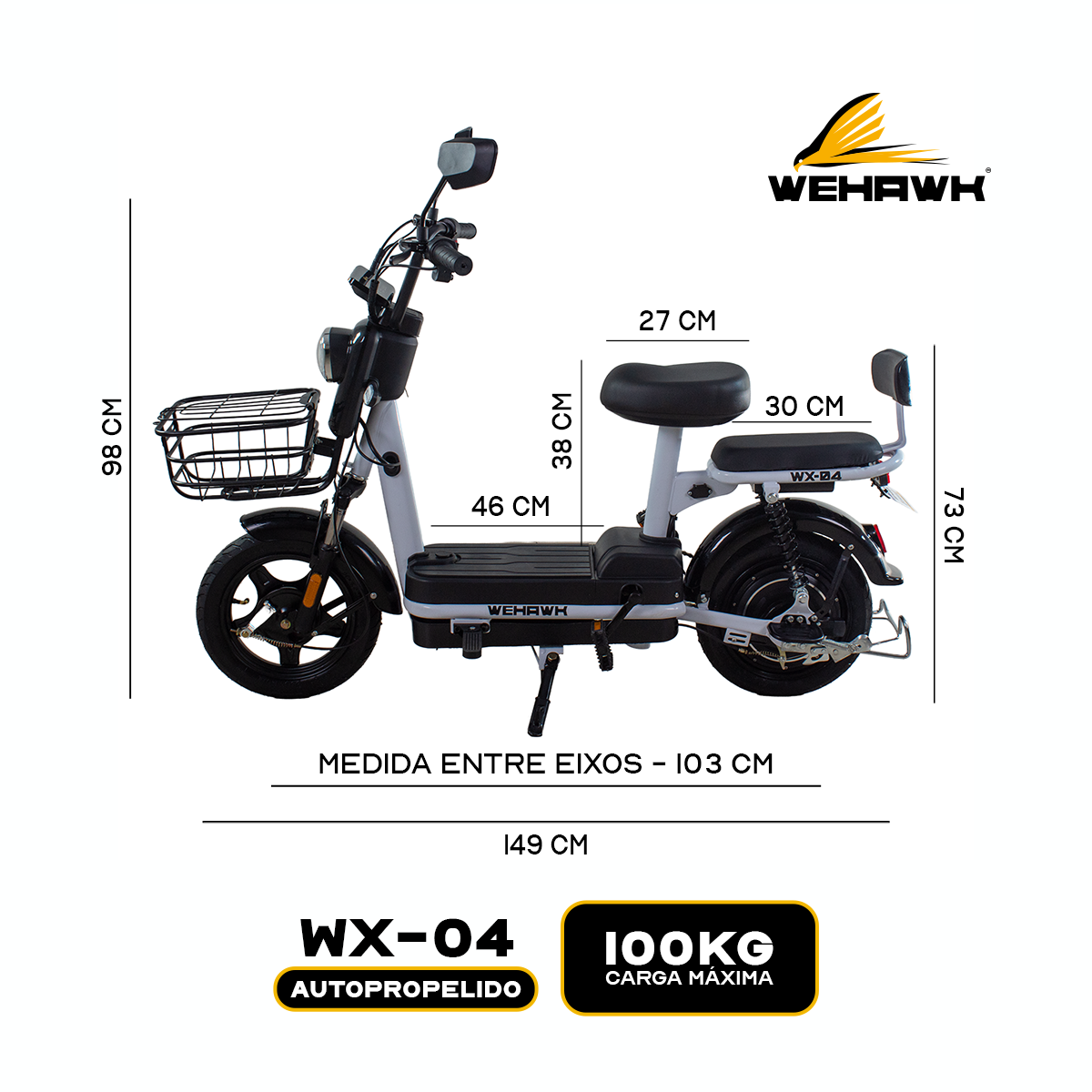 Bicicleta Scooter Eletrica Wx-04 Wehawk 450w Bat 48v 12ah Preta Br