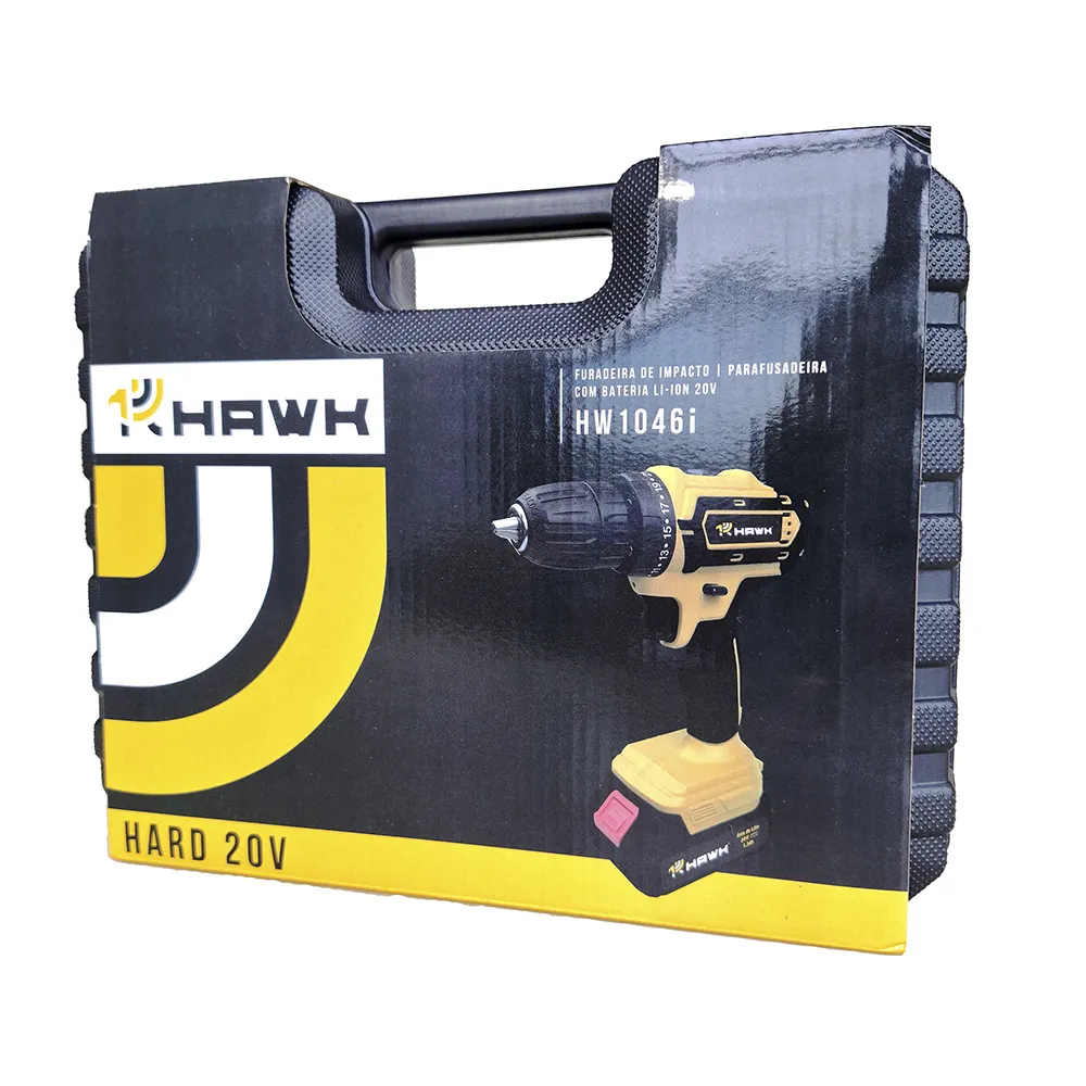 Parafusadeira E Furadeira De Impacto 20v 3/8" Bivolt 1.5ah Li-Ion Hw1046i Duas Baterias Hawk