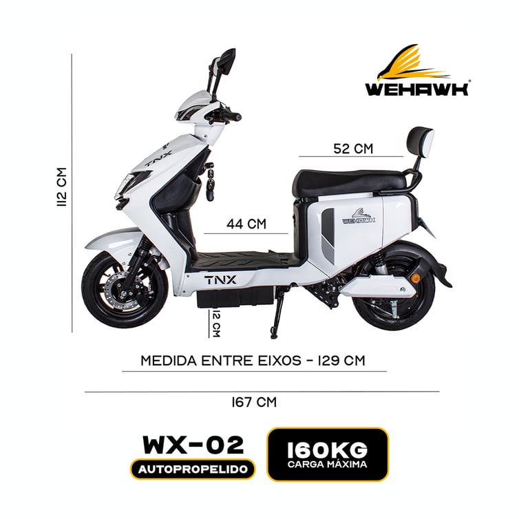 Scooter Bicicleta Eletrica Wx-11 Wehawk 1000w Bat 60v 20ah 2 Lugares Branca
