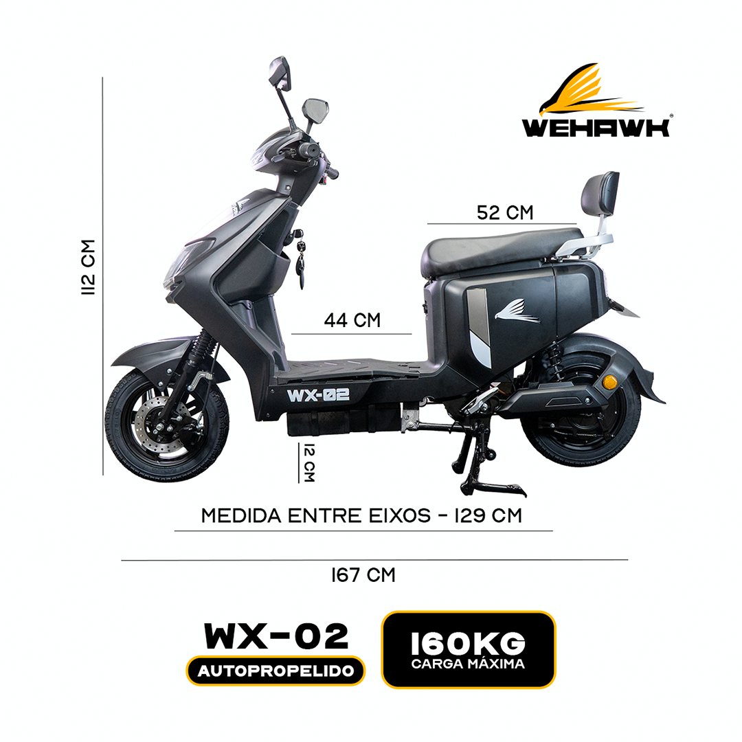 Scooter Eletrica Compacta X17 Light Wehawk 1000w Bat 48v 20ah 2 Lugares Preto Fosco