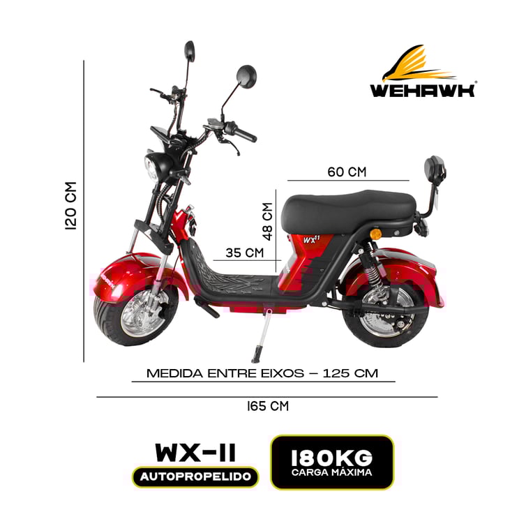 Scooter Bicicleta Eletrica Wx-35 Wehawk 1000w Bat 60v 20ah Litio Vermelha