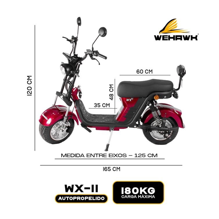 Scooter Bicicleta Eletrica Wx-11 Wehawk 1000w Bat 60v 20ah 2 Lugares Vermelho Bordo