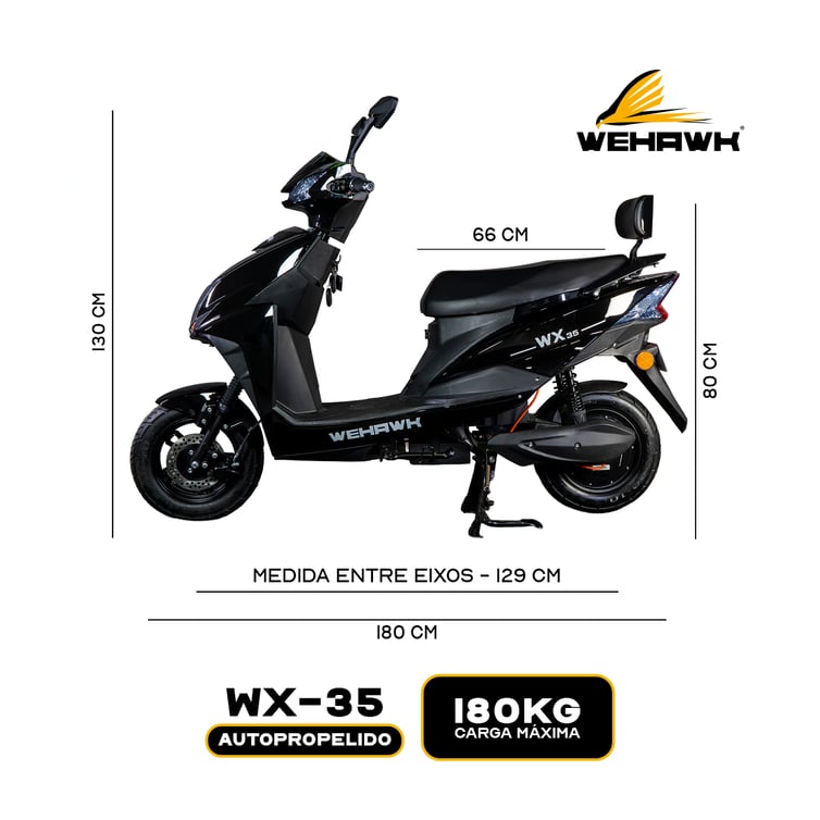Scooter Bicicleta Eletrica Wx-35 Wehawk 1000w Bat 60v 20ah Litio Preta