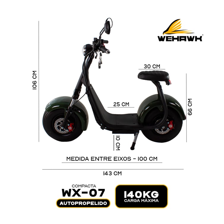 Scooter Eletrica Compacta Wx-07 Wehawk 1000w Bat 60v 20ah 1 Lugar Verde Escuro