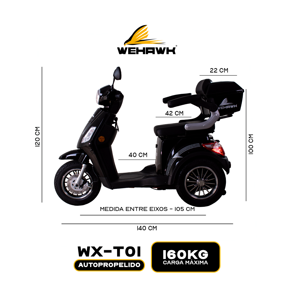 Triciclo Eletrico Mult 3 Wx-T03 Wehawk 800w Bat 48v 20ah Litio 3 Lugares Preto