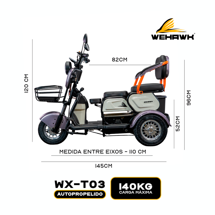 Triciclo Eletrico Mult 3 Wx-T03 Wehawk 800w Bat 48v 20ah 3 Lugares Off White/Prata
