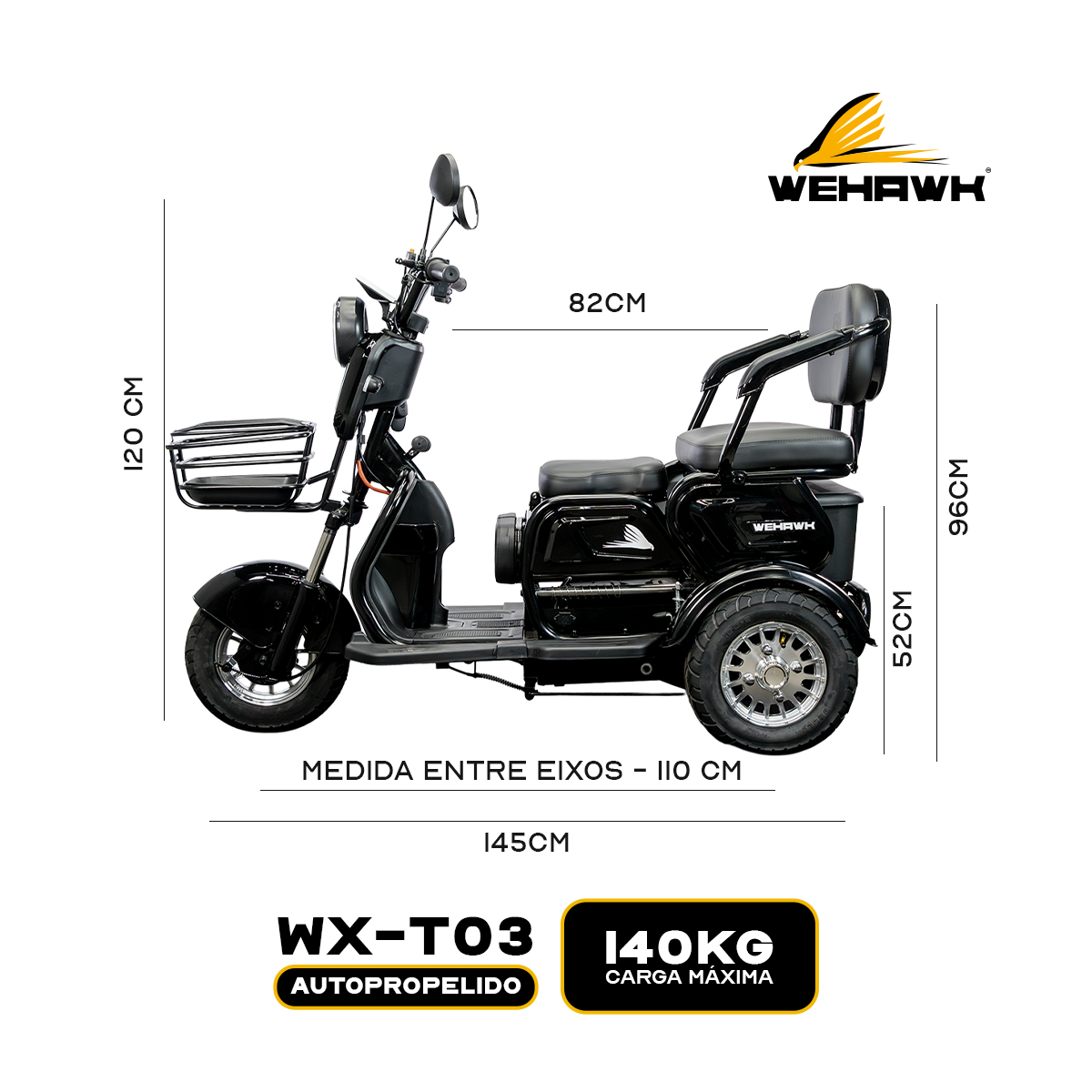 Triciclo Eletrico Mult 3 Wx-T03 Wehawk 800w Bat 48v 20ah 3 Lugares Preto